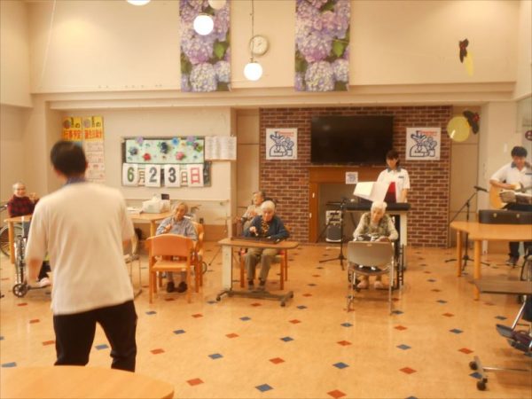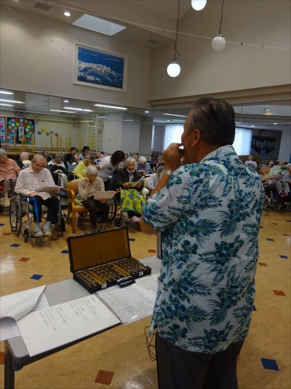 7月の地域交流会には、永井修様が来苑され、懐かしい歌謡曲や唱歌などの数々を、ハーモニカの演奏で披露して下さいました。