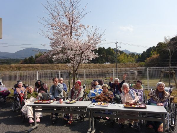 さくらが満開になりました。お天気も良く室内で過ごすのはもったいない、ということで外に出てみました。おやつも青空の元頂きいつも以上に美味しいおやつでした。