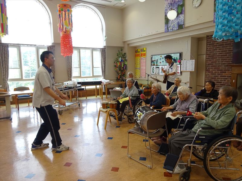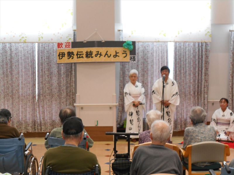 利用者様と職員も一緒に参加され伊勢音頭を、