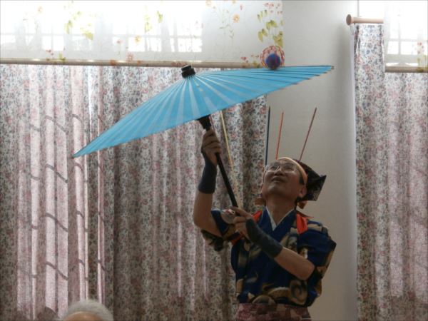 傘でボールを回したり、皿回しや