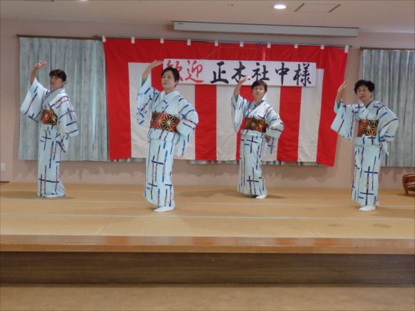 利用者の皆さんは、素敵な踊りや唄に笑顔で手拍子をされ、
