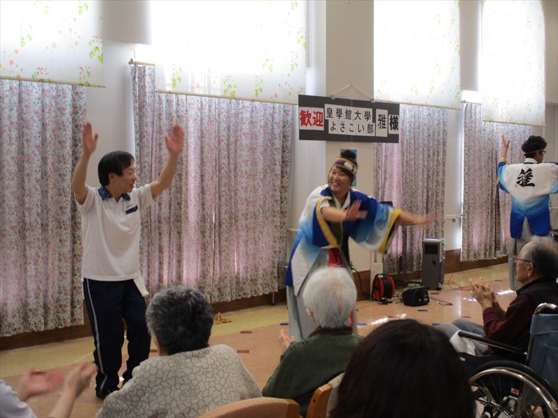 ある利用者様は歌や踊りが大好きで、学生の皆さんに混じって