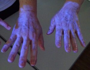 感染・食中毒訓練の一環として、職員の手洗い訓練を実施しました。