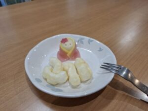 ゲームの後のおやつもひな餅とひなあられでした