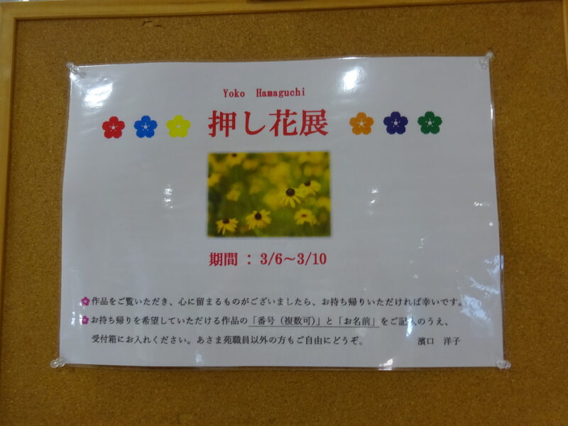 先日、当苑の職員の方が制作された押し花展を開催しました。