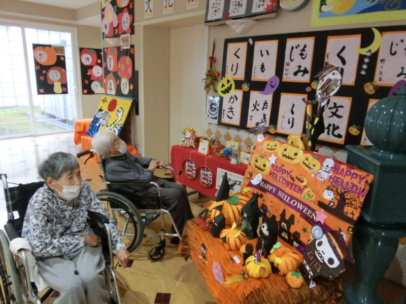 先月下旬から今月4日まで利用者の皆さんの作品を展示させて頂く文化祭を実施しました。ご自身で書かれた書道作品や工作クラブで来年の干支の巳をイメージして作られた達磨など見ながら喜ばれていました。