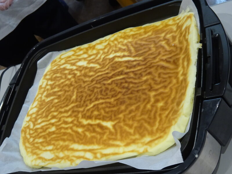 手作りおやつのロールケーキが完成しました。