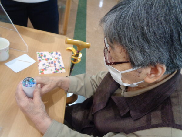 5月のお持ち帰りレクは、身近にある材料で万華鏡を作りました(^^♪