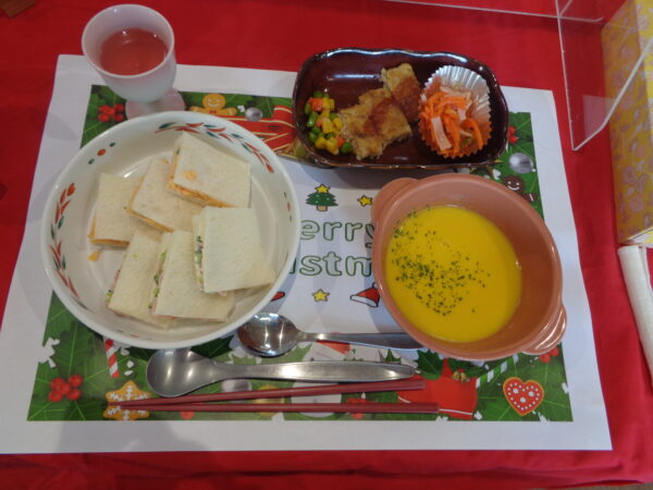 クリスマス特別メニューのお昼ご飯やケーキを食べて