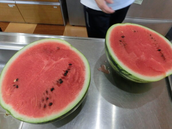あさま苑ではスイカ割りゲームで楽しんだ後、よく冷えたスイカをみんなでおいしくいただきました。