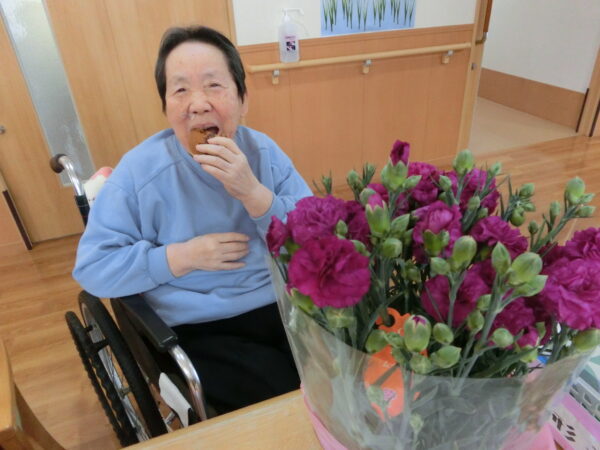 お花を眺めながらおやつを食べ、楽しいひとときを過ごしました。