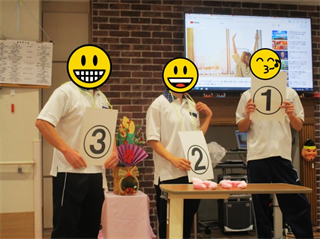 新しい職員さんも増えたので、自己紹介を兼ねて、お正月に😜🐇うっそぴょ~ん🐇😜というゲームを実施しました😁